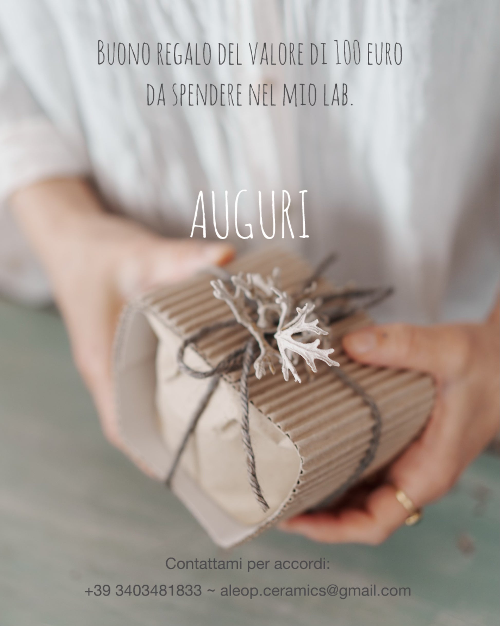 Regala a chi vuoi bene la possibilità di scegliersi la ceramica che preferisce. Non è sempre facile indovinare il gusto di qualcuno, questa è la soluzione per non sbagliare. Scegli il valore del buono, la persona che lo riceverà dovrà semplicemente contattarmi per trovare il suo regalo perfetto.